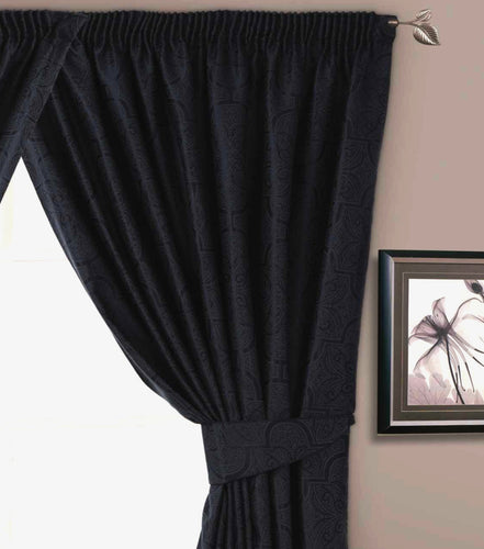 Marrakesh Black - Jacquard Floral Curtain Pair
